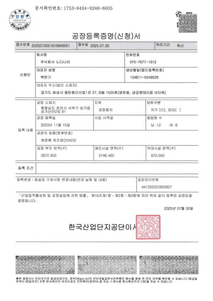 공장 등록 증명서