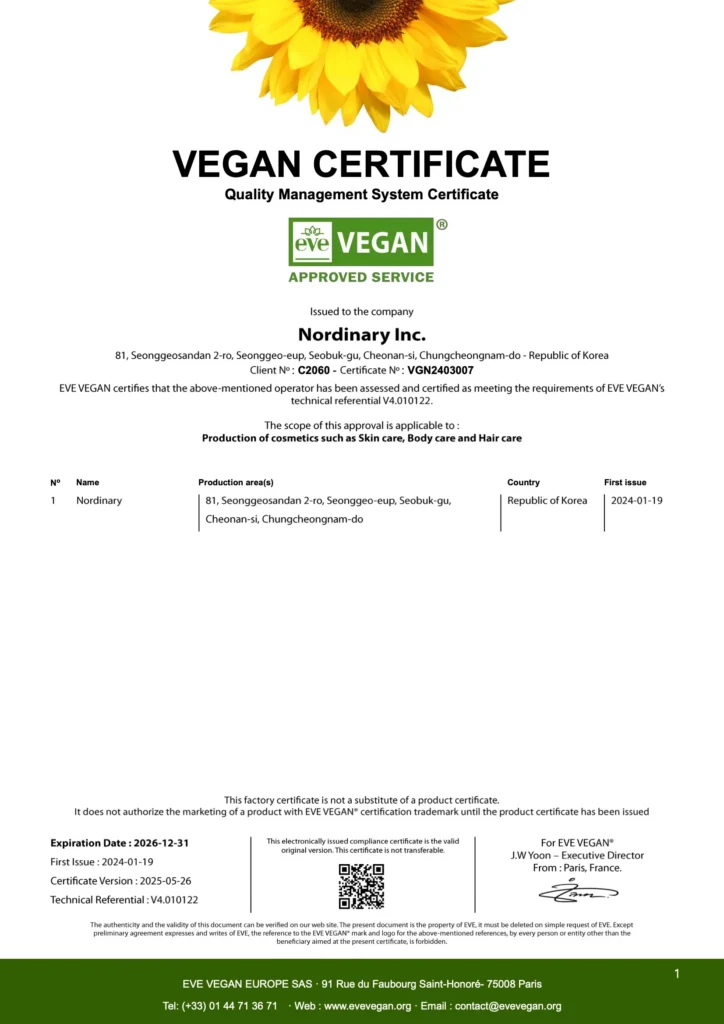 이브비건 인증서